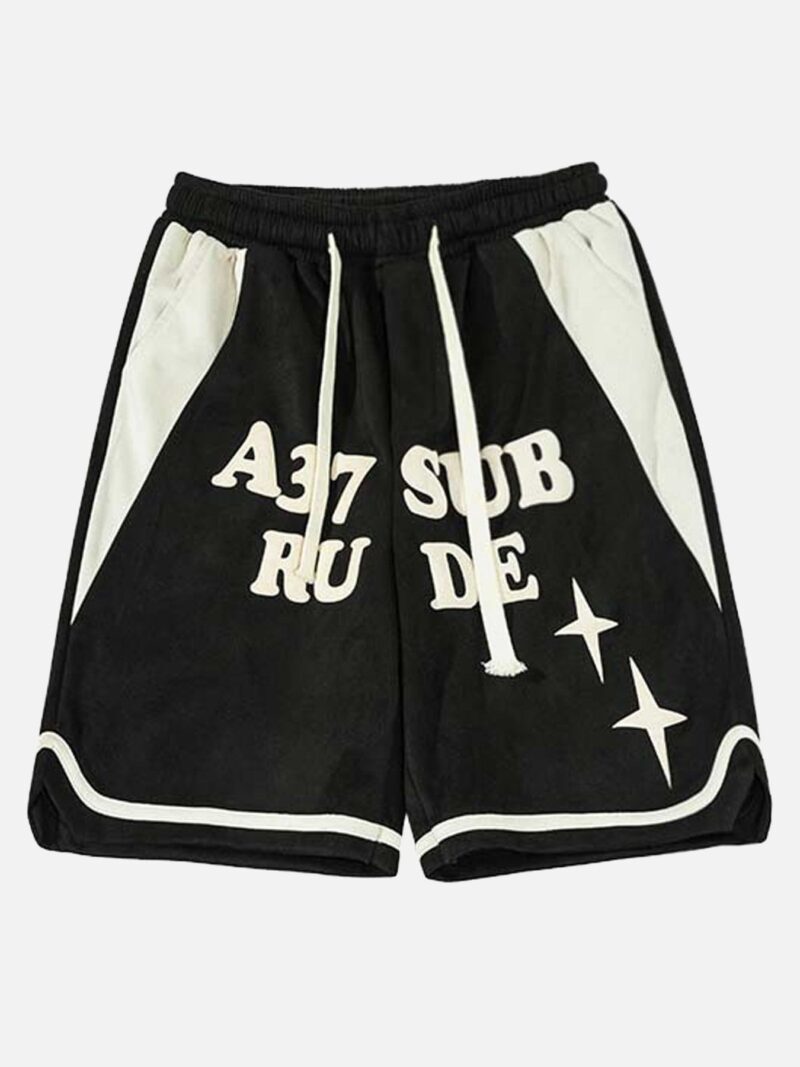 Suede Letter Embroidery Shorts